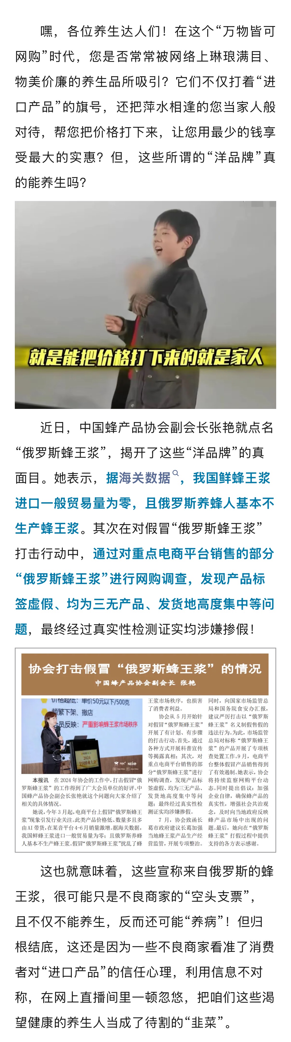 “俄羅斯蜂王漿”物美價廉?官方回應:別再被騙了!