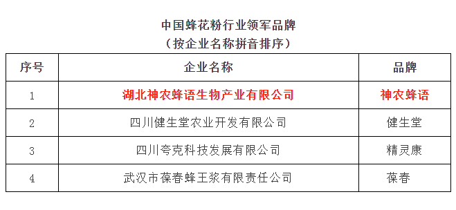 近日從中國蜂產品協會獲悉,該協會開展的“中國蜂產品行業影響力十大品牌和領軍品牌”已經通過審定,現將初評名單進行公示。湖北神農蜂語生物產業有限公司入圍。