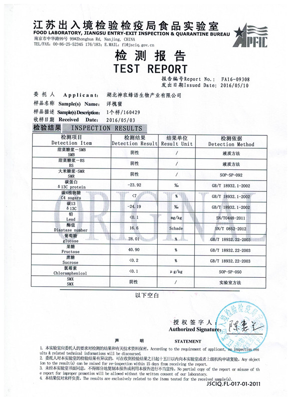下一篇:菊花蜜檢驗報告(2016-11-30)