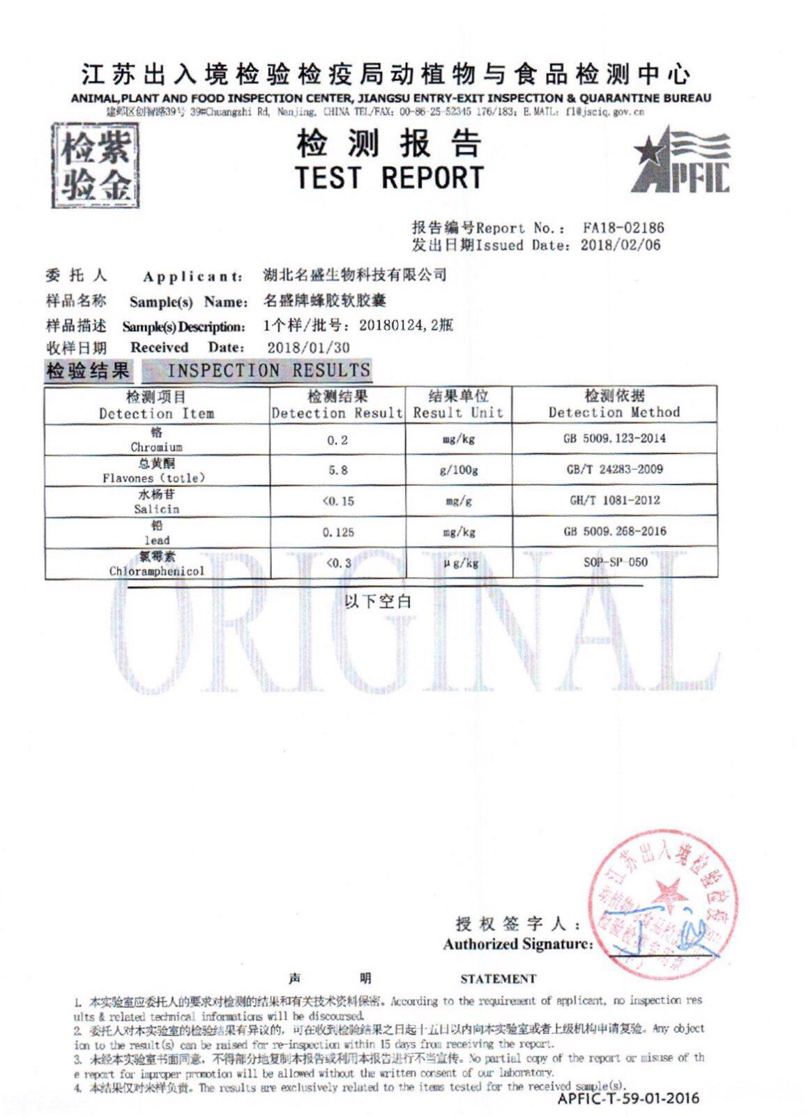 注:湖北名盛生物科技有限公司是湖北神農蜂語生物產業有限公司的蜂膠軟膠囊代工生產企業,故報告中出現的是前者。