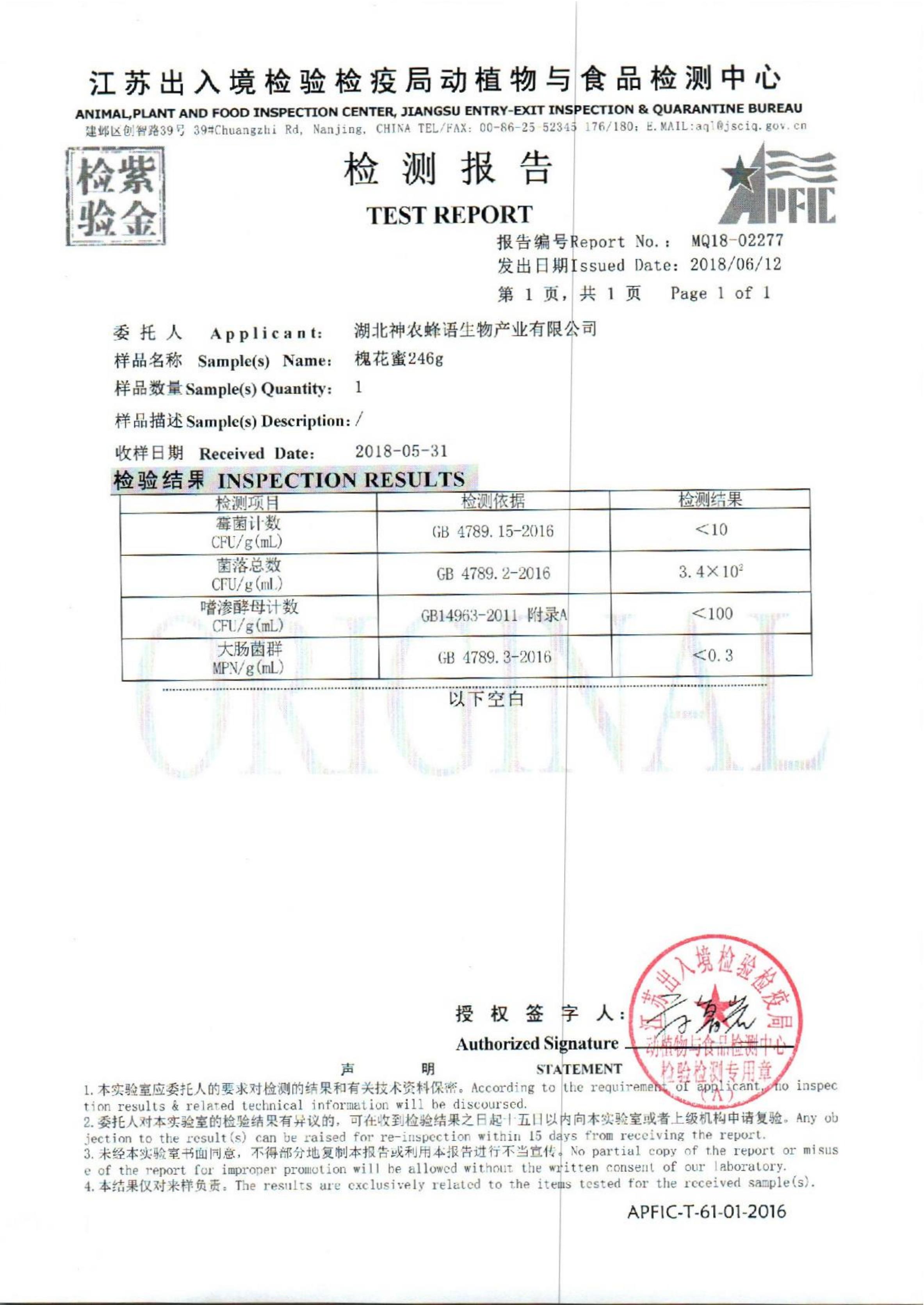上一篇:野生蜂蜜檢測報告(2018-5-16)