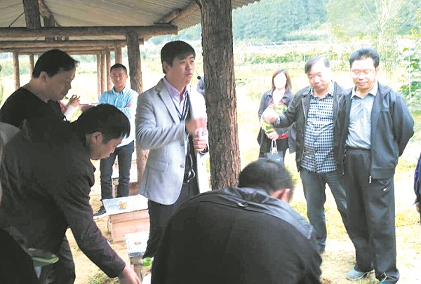神農蜂語總經理丁偉(左四)介紹中蜂認養情況