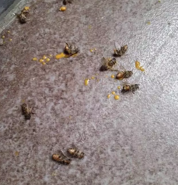 出現大肚病的中蜂,肚子鼓鼓的,脹死了。
